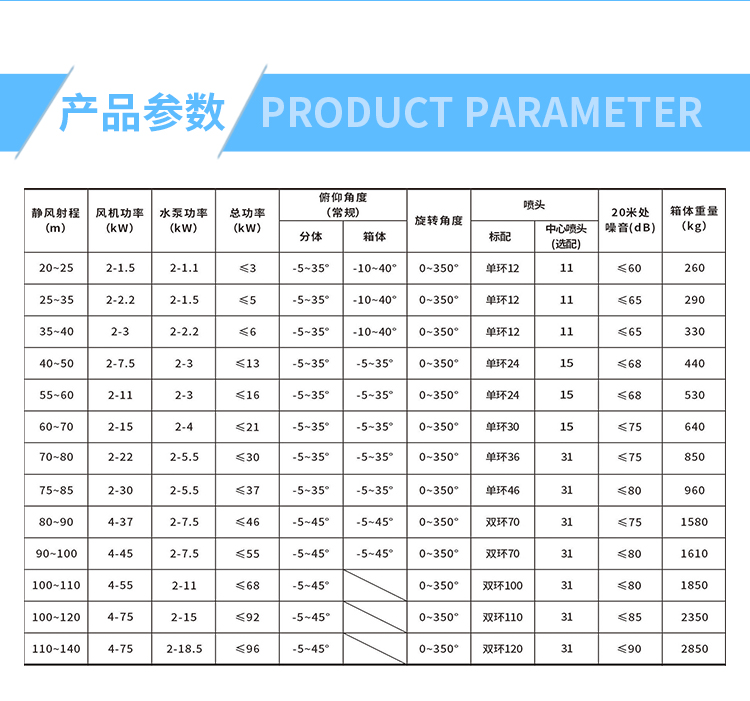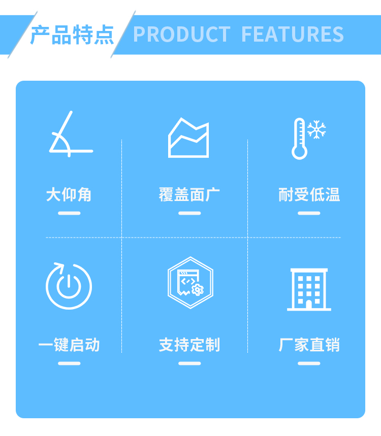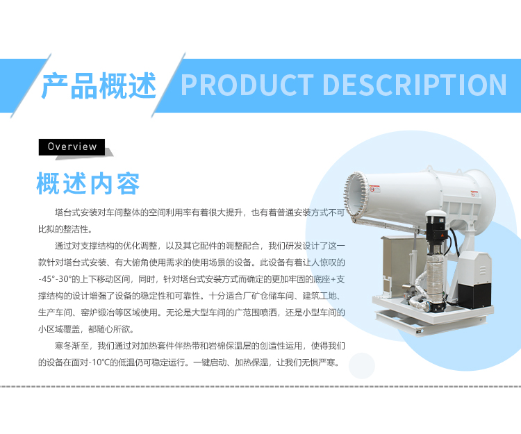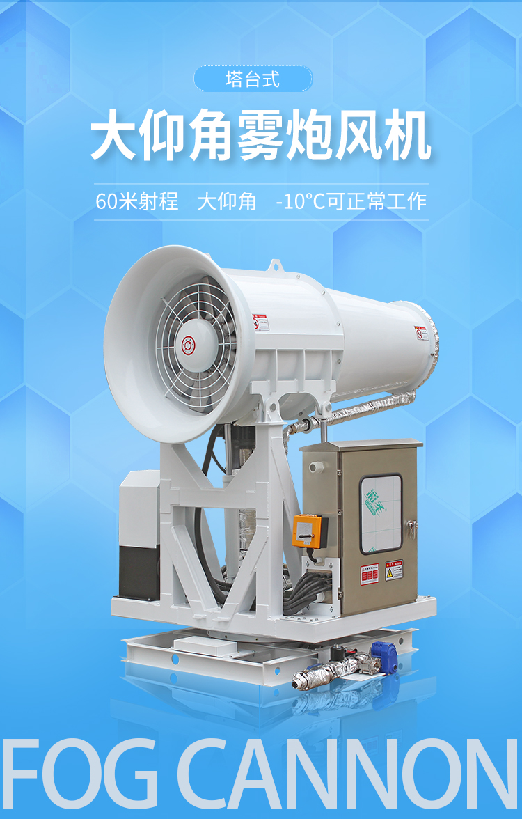 產品特點:塔臺式礦場降塵霧炮風機有著讓人驚嘆的-45-30度的上下移動區間,同時,針對塔臺式安裝方式而確定的更加牢固的底座+支撐結構的設計增強了設備的穩定性和可靠性。